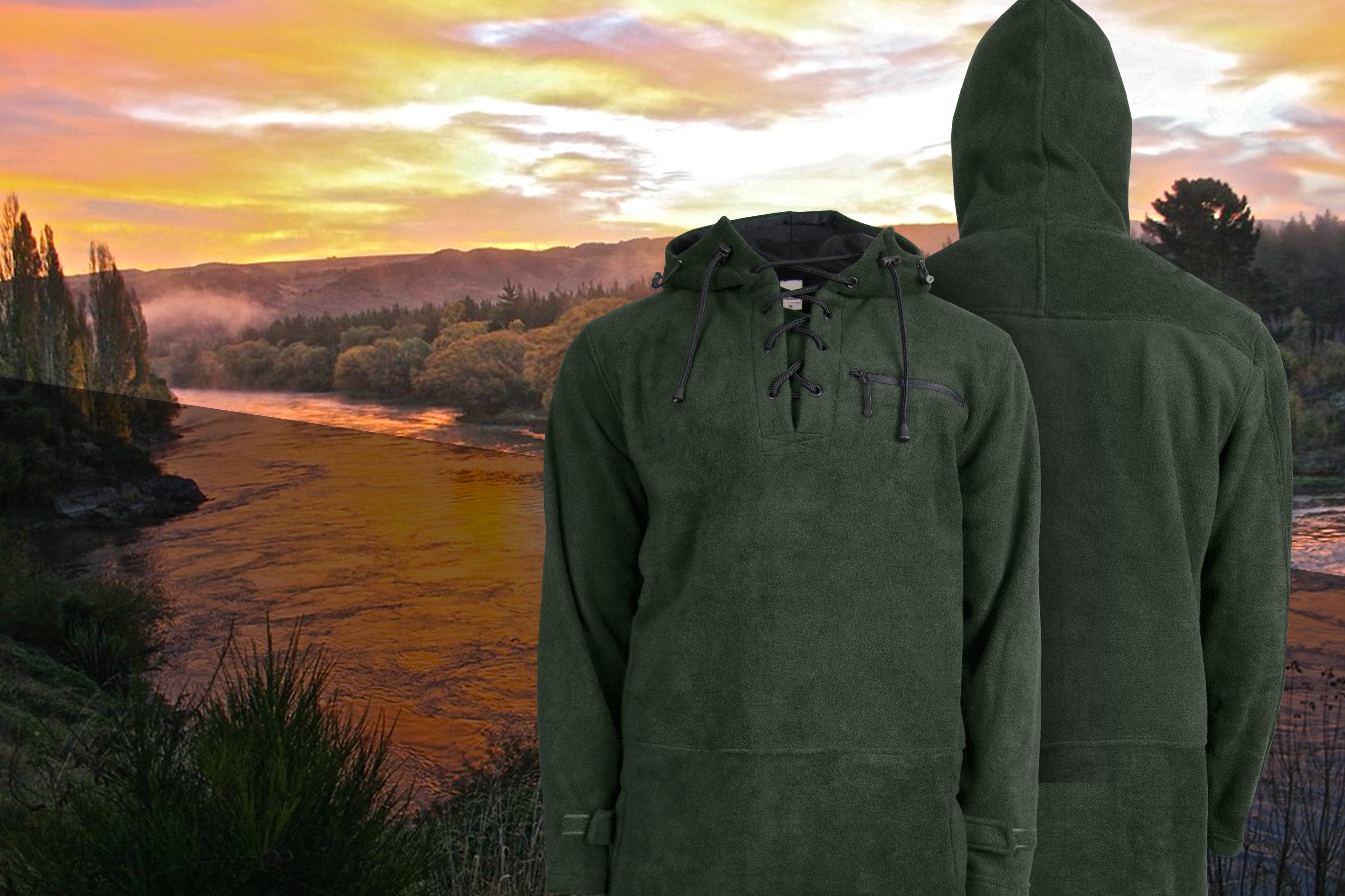 Our hooded bushshirt is a heavy duty 360 GSM anti pill fleece. Hood & torso fully lined with our Grade 5 wind and waterproof fabric. We have worked for a number of years on developing this lining for our corporate rural clients. Not only will it protect against the harshest of New Zealand environments it gives complete comfort next to the skin. Shoulder to knee with double chest pockets, adjustable hood and lined side pockets this is the ultimate jacket for the outdoorsman, even if that is standing on sideline on freezing winter mornings. (trust us not only are we from the south we have spent years refining this garment) Easy to wash and dry. A retro champion now fully specified with modern features and comforts.